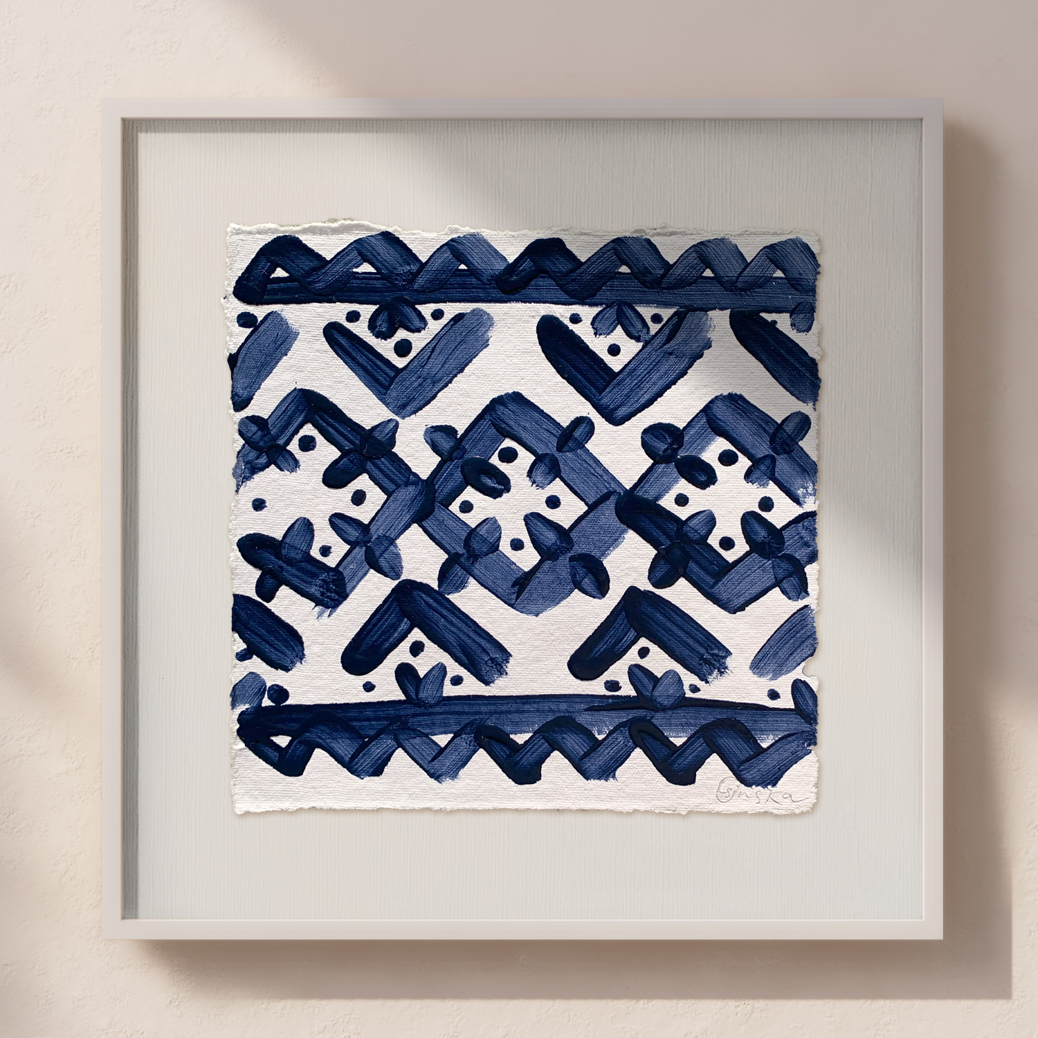 Acrylic on handmade cotton paper using Deep Ultramarine Blue.