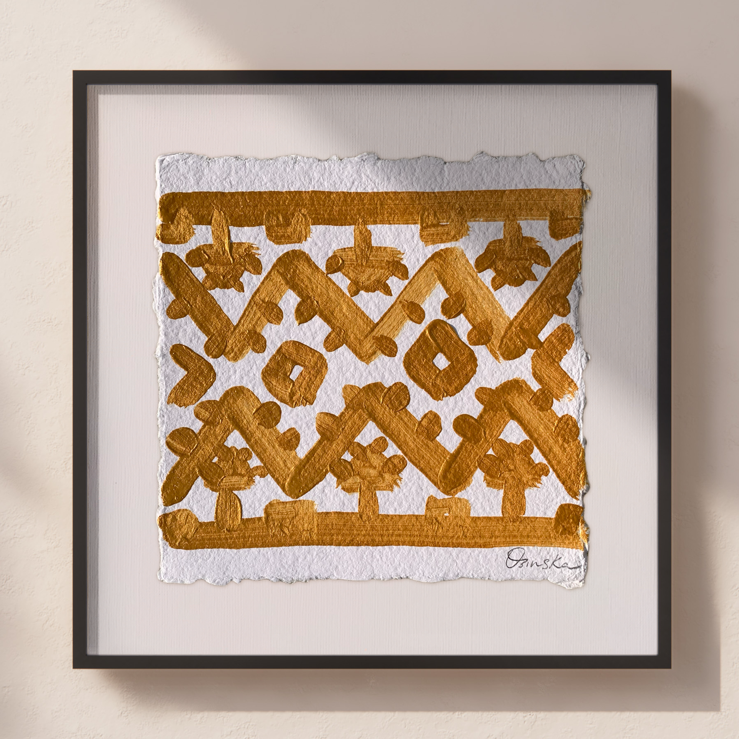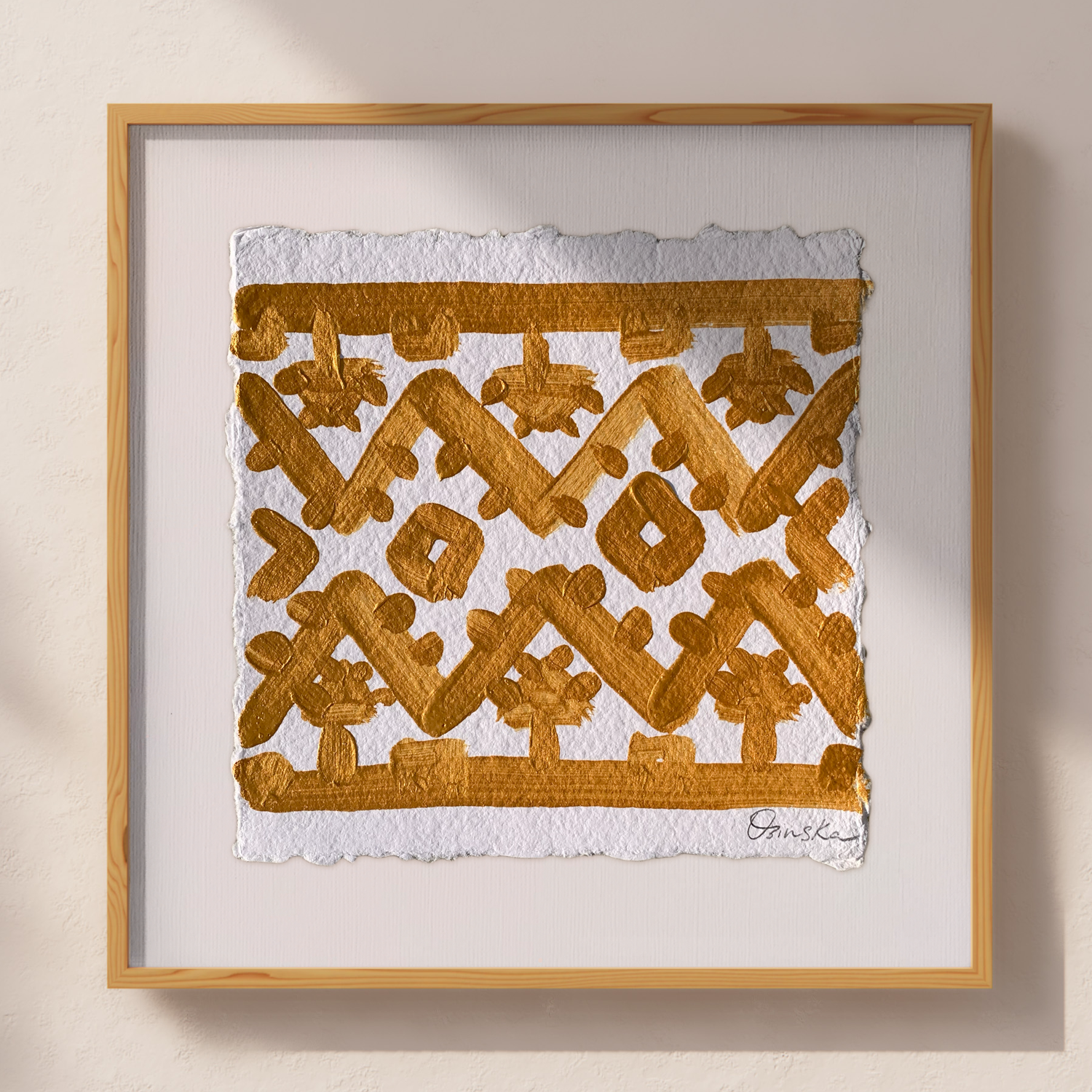 Acrylic on handmade cotton paper using Golden Iridescent Bright Gold.