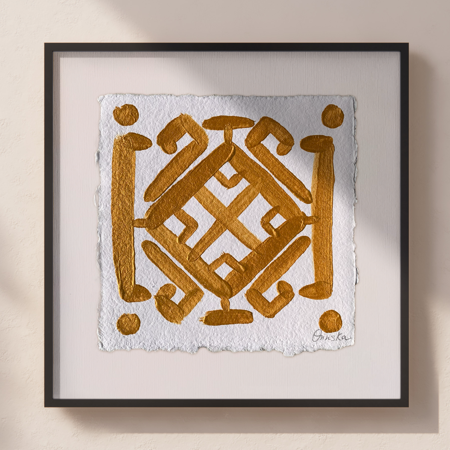 Acrylic on handmade cotton paper using Golden Iridescent Bright Gold.