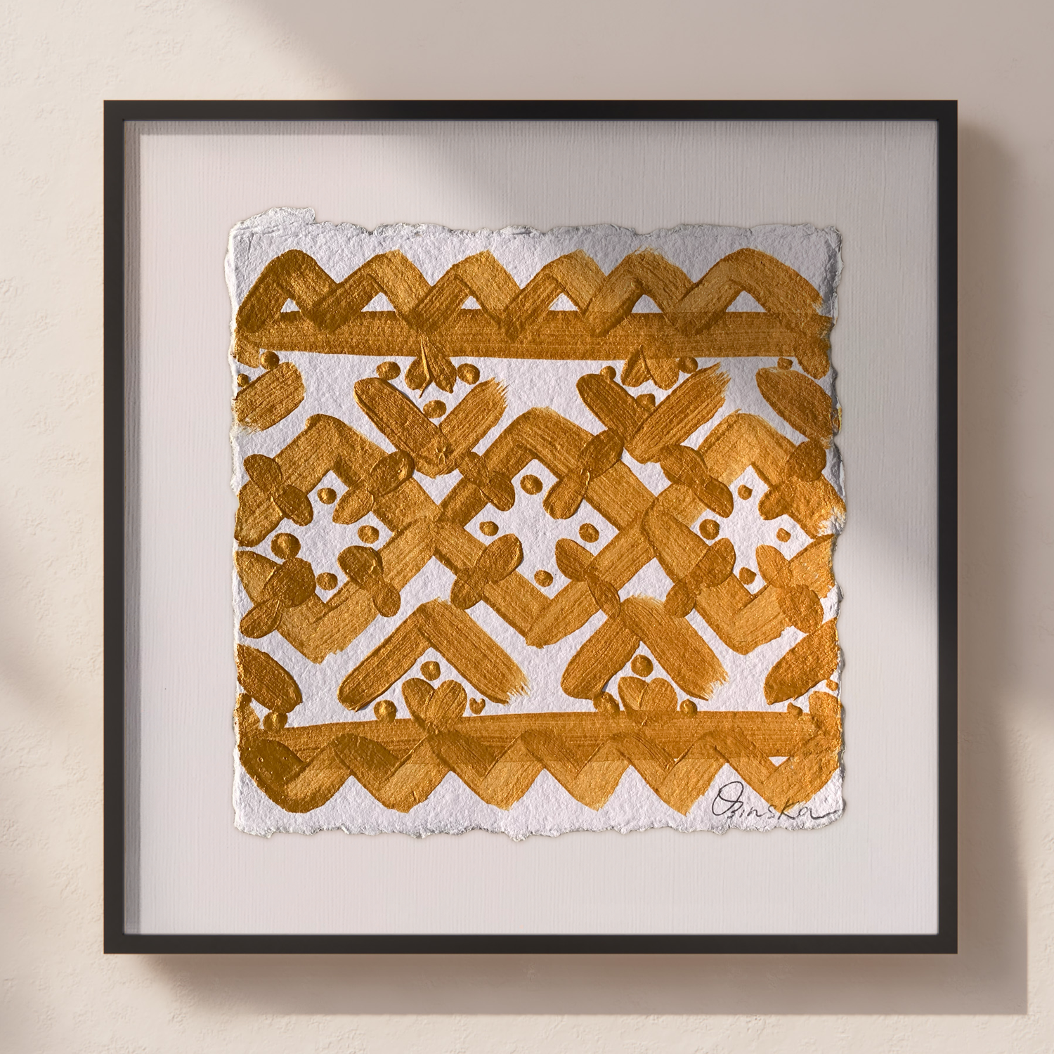 Acrylic on handmade cotton paper using Golden Iridescent Bright Gold.