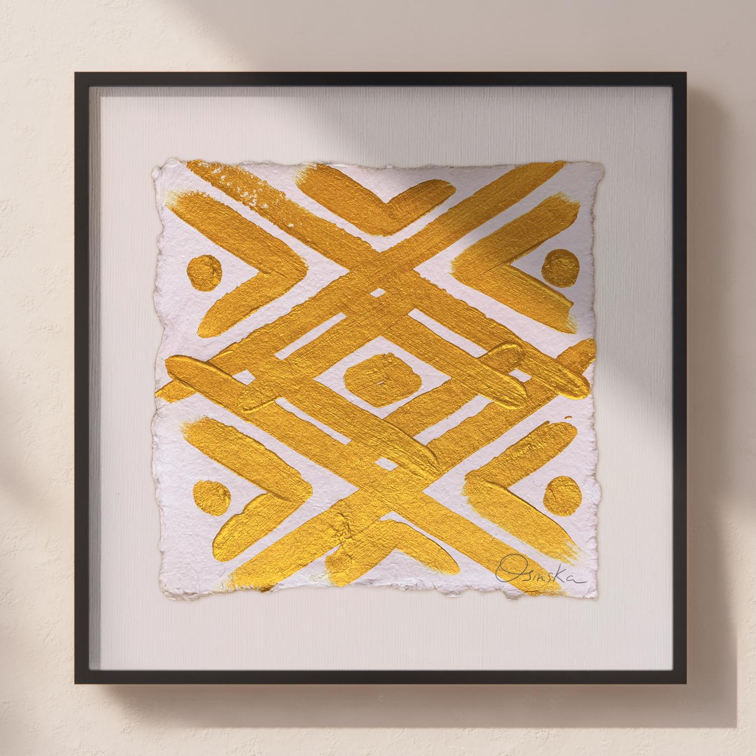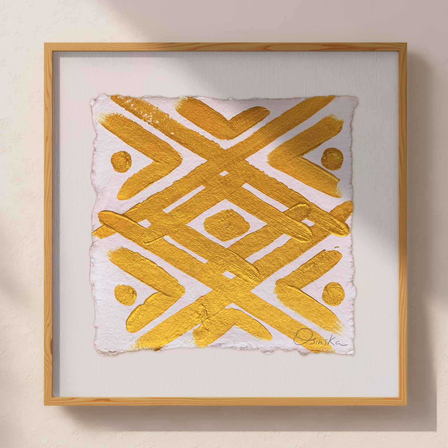 Acrylic on handmade cotton paper using Golden Iridescent Bright Gold.