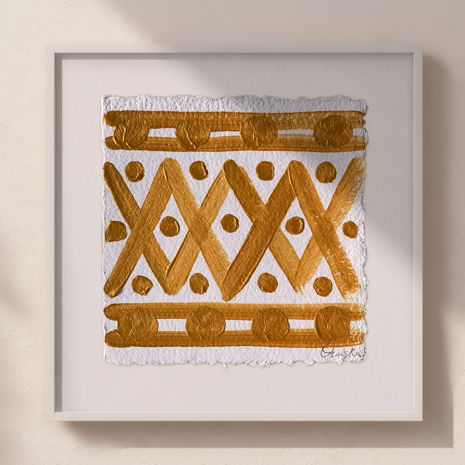 Acrylic on handmade cotton paper using Golden Iridescent Bright Gold.
