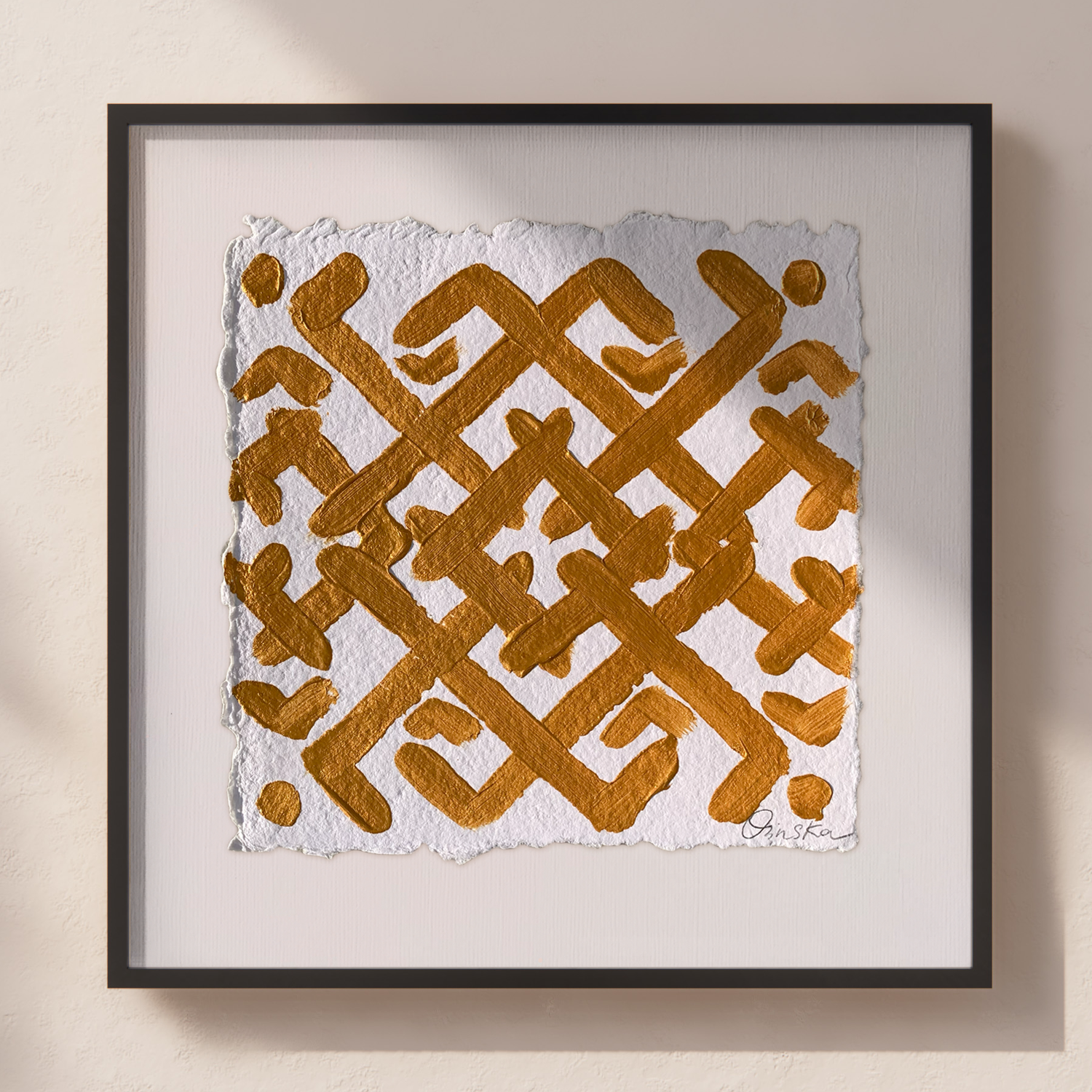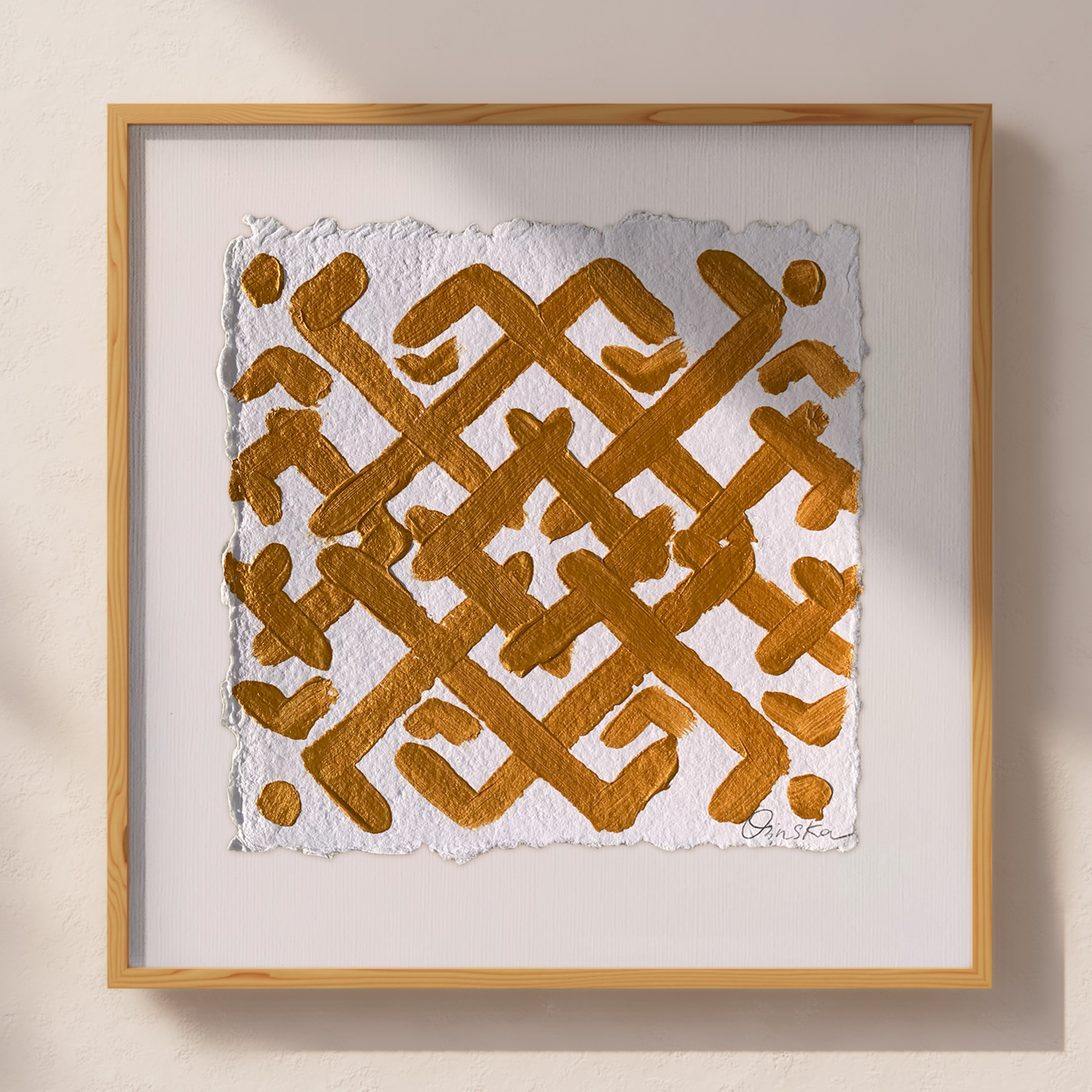 Acrylic on handmade cotton paper using Golden Iridescent Bright Gold.