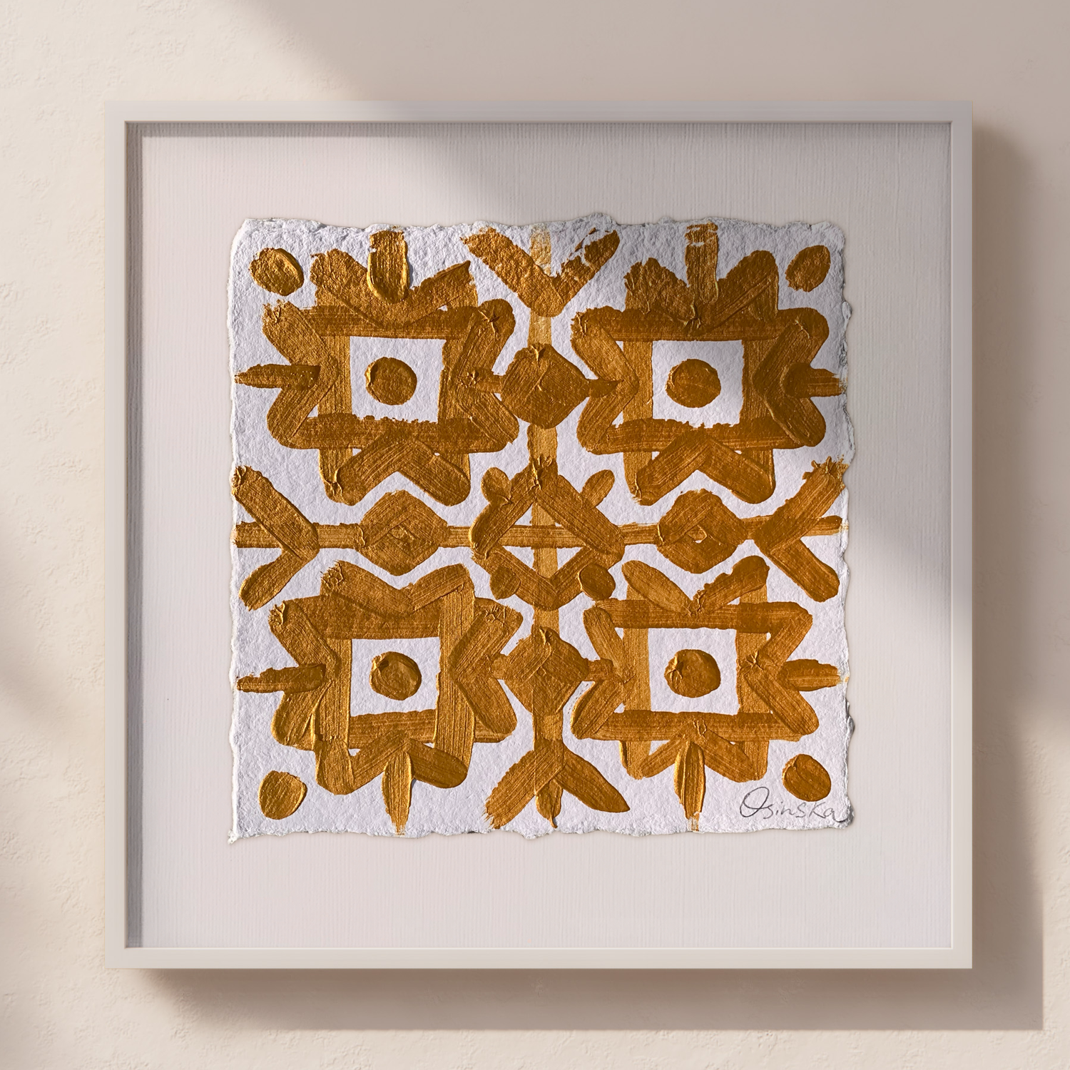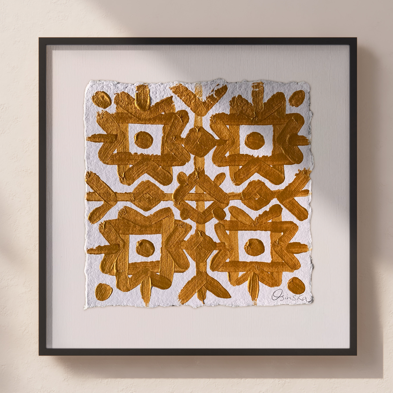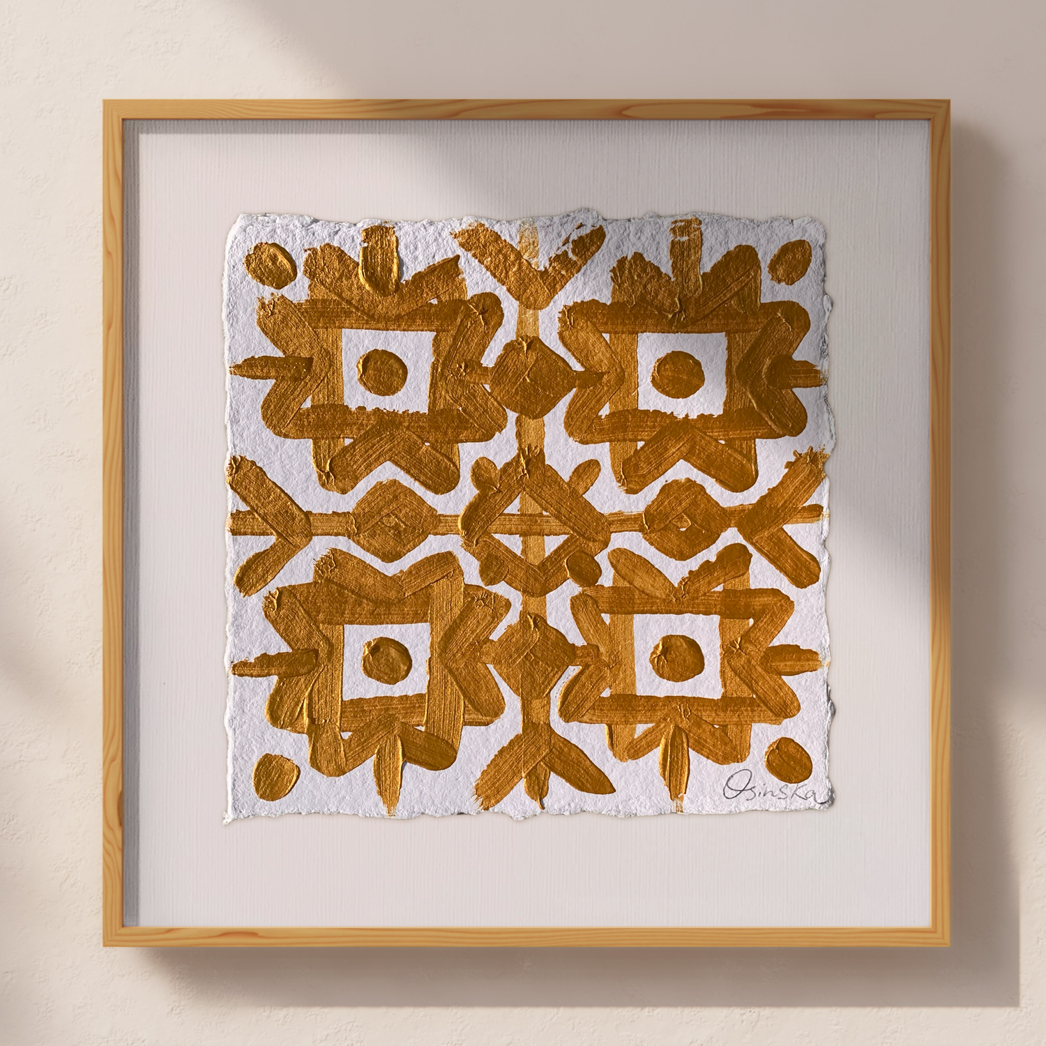 Acrylic on handmade cotton paper using Golden Iridescent Bright Gold.