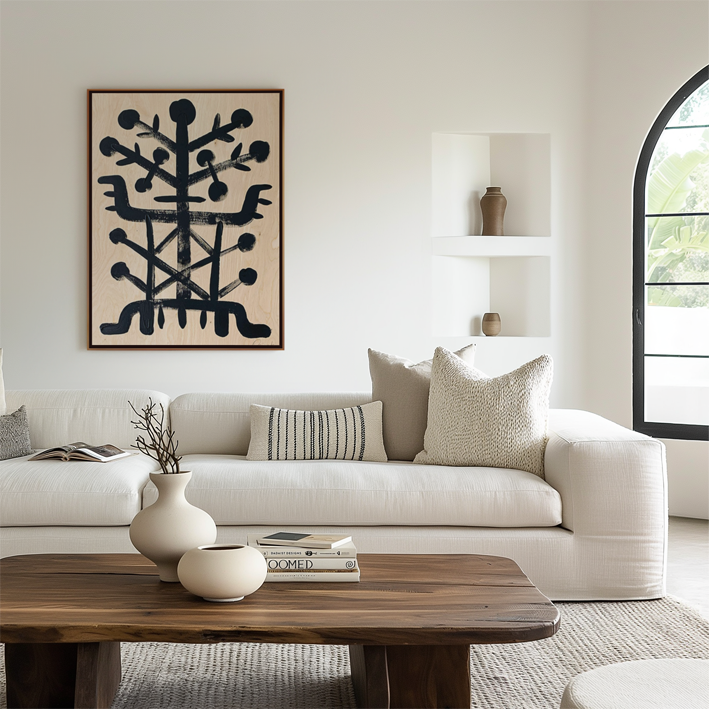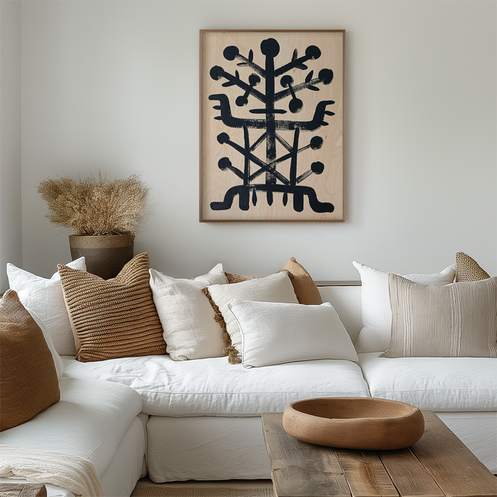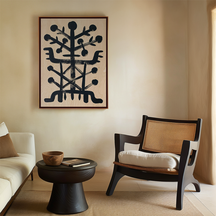 This piece evokes a protective Tree of Life. The interwoven base — like roots or scaffolding — represents grounding and resilience. The central cross-structured geometry reflects inner discipline and balance. The upper section, with upward branches and rounded elements, symbolizes growth, feminine energy, and spiritual awakening.