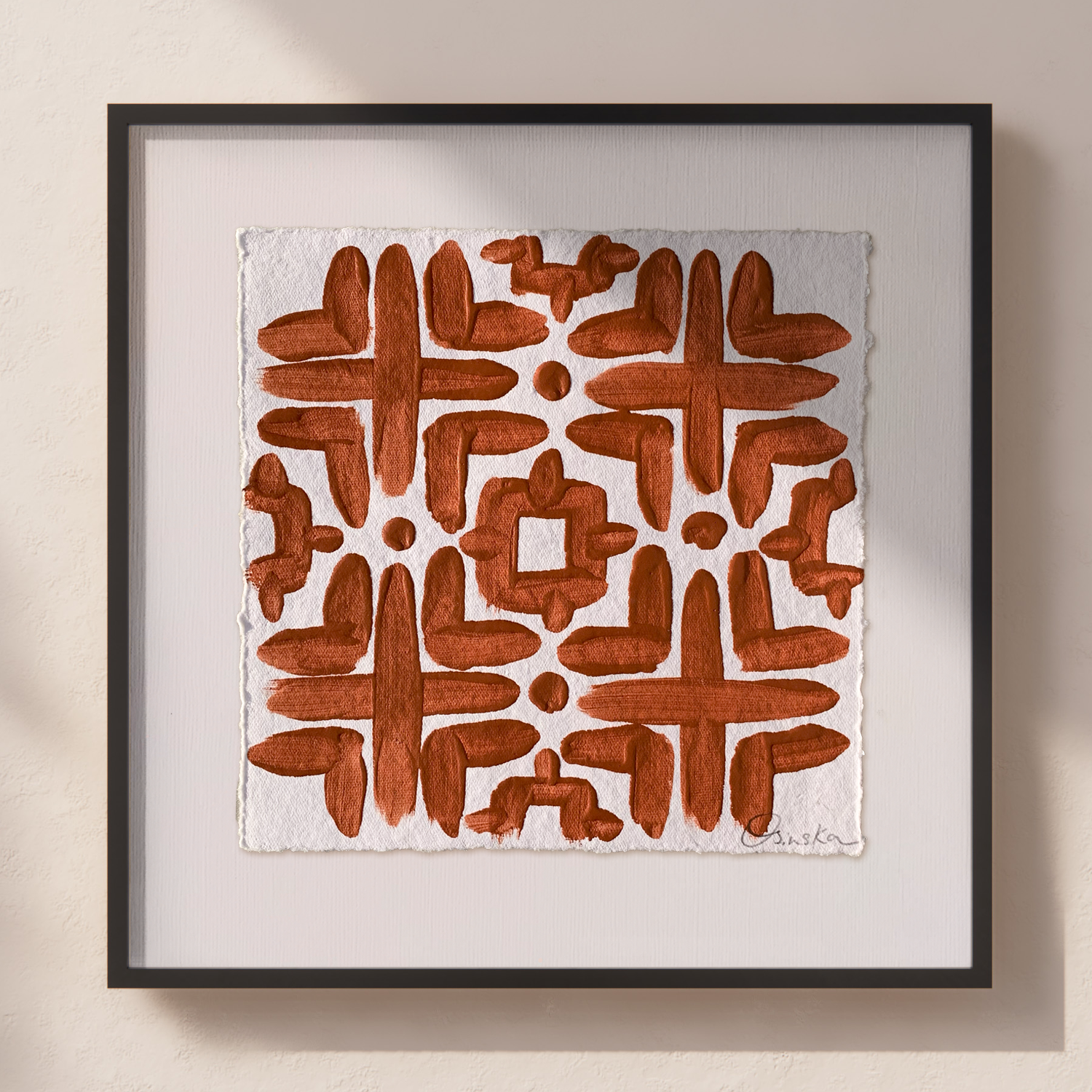 Acrylic on handmade cotton paper using Terracotta Red.