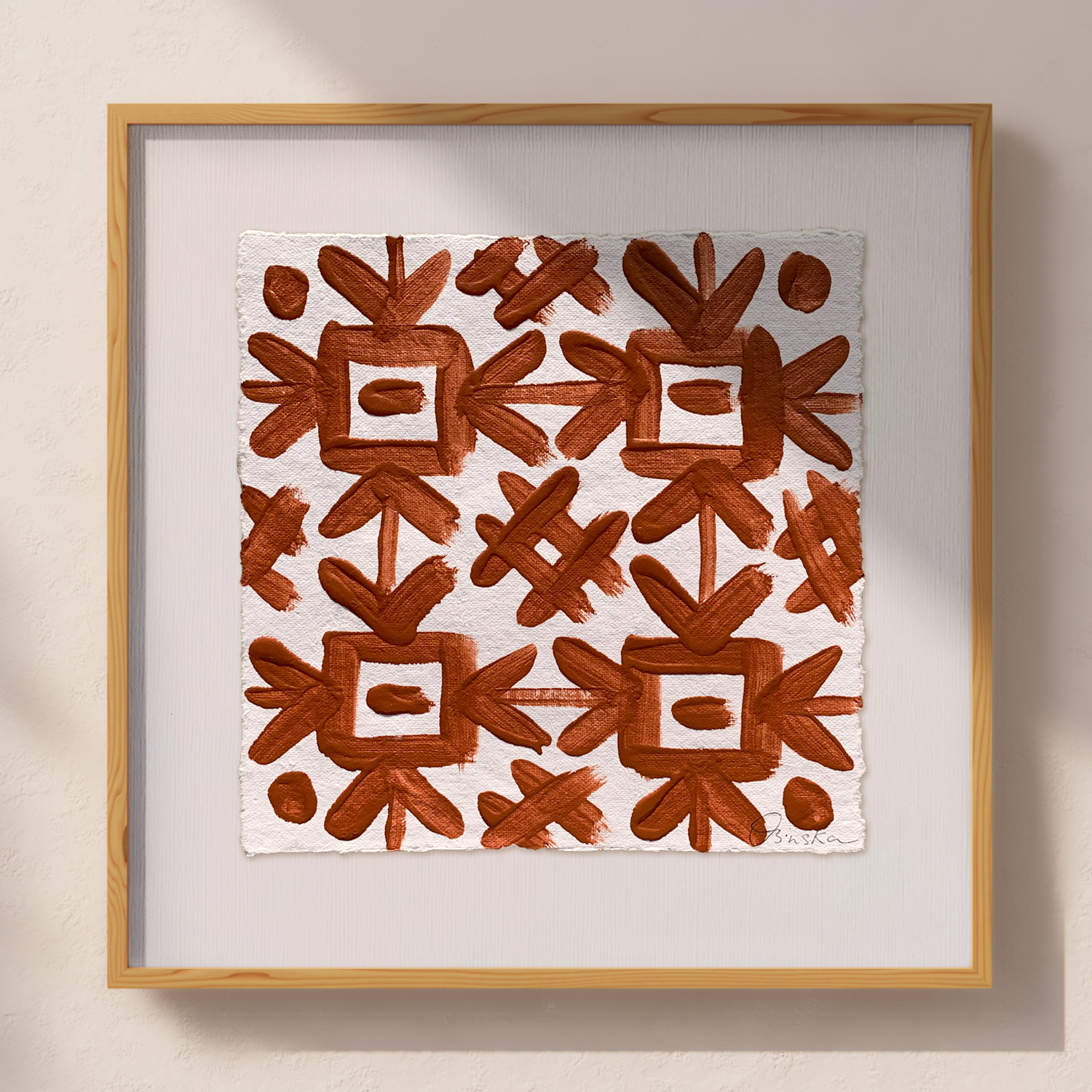 Acrylic on handmade cotton paper using Terracotta Red.