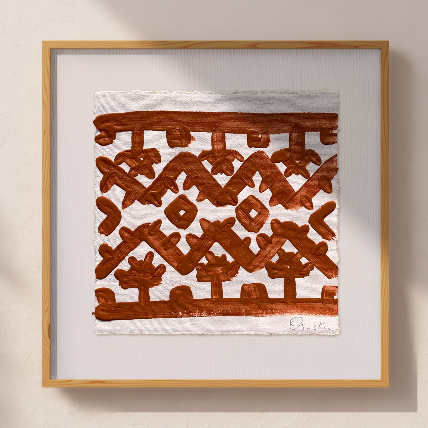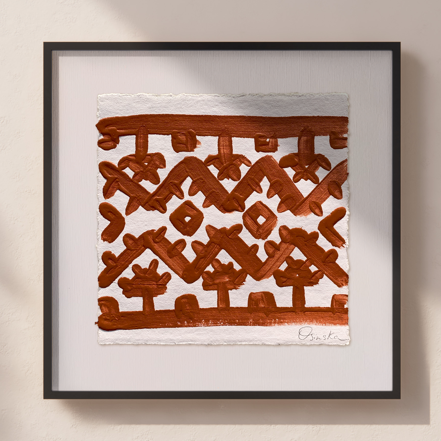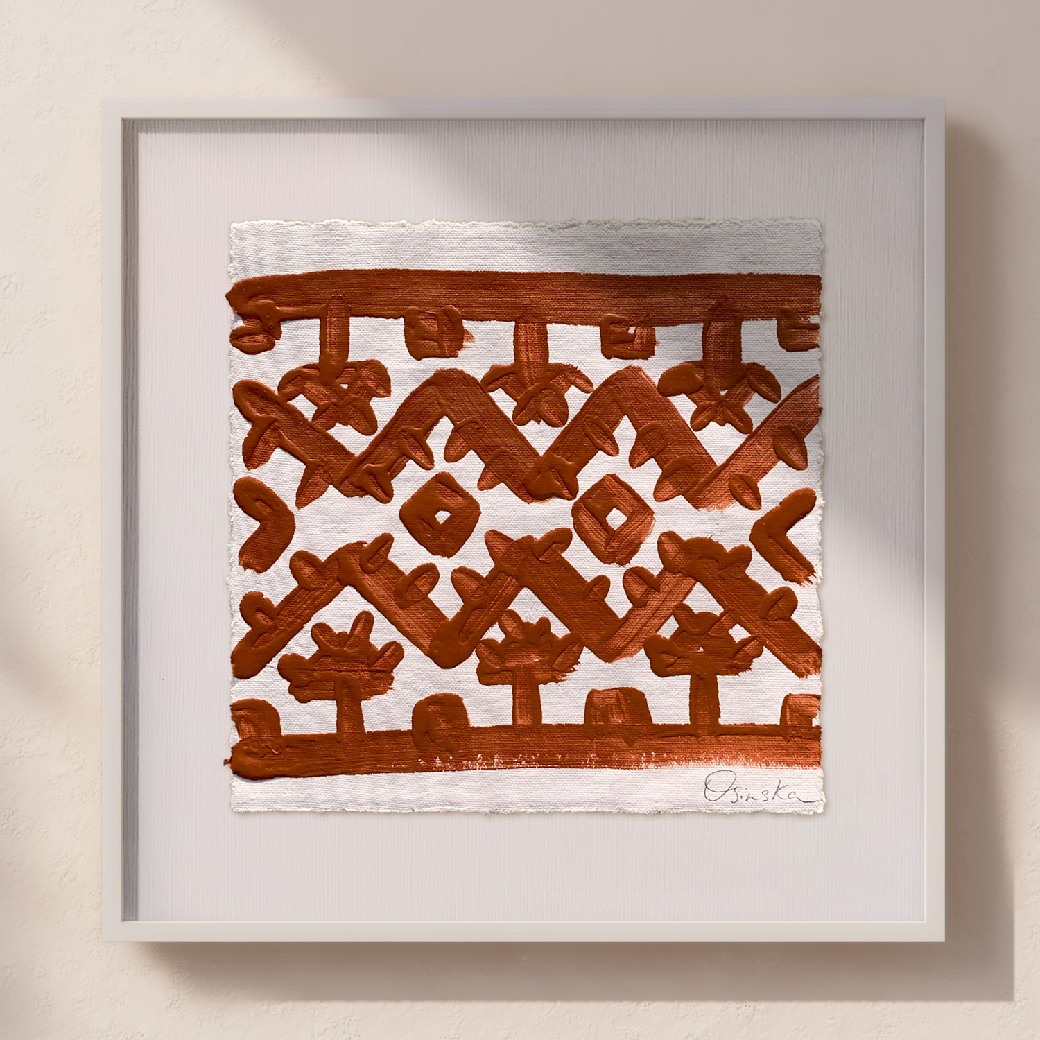 Acrylic on handmade cotton paper using Terracotta Red.